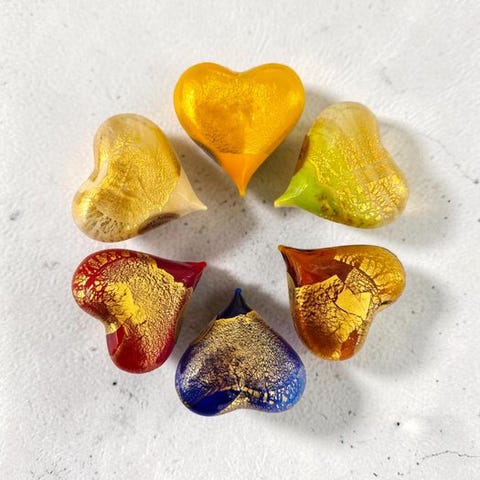 Glasbasen er fyldt med små glassten af Murano-glas.
