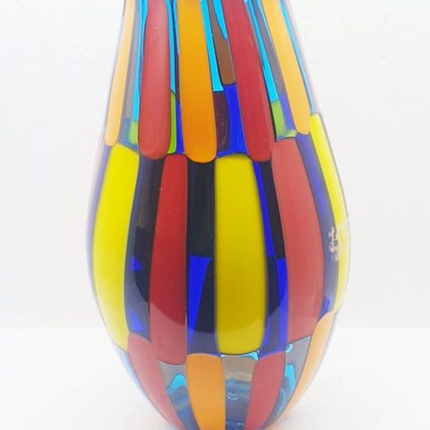 Italiensk glasvase, 16 cm høj og 12 cm i diameter, håndblæst af A. Ballarin fra Murano, underskrevet i bunden og leveret med et ægtheds certifikat Klik på den blå "gå til varen" knap, for at købe eller byde på denne vare. Den samlede pris vil blive vist inden du afgiver dit bud.