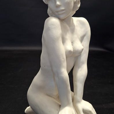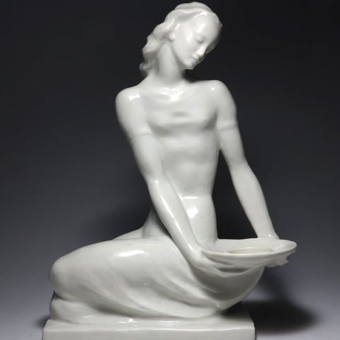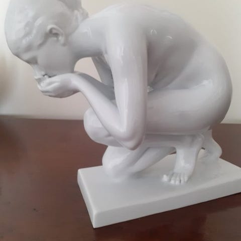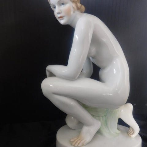 Denne figur er en porcelænsakt af en kvinde, lavet af biskvit (uglaseret porcelæn) "Siddende", og kommer fra den tyske manufaktur Rosenthal.