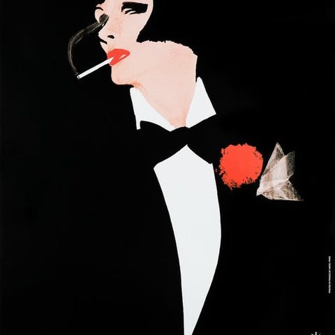 Originale reklameplakat (offsettryk) fra 1981 af Razzia (alias for Gérard Courbouleix–Dénériaz, signeret i trykket nederst til venstre) til 'Pret à porter Féminin' modeuger i Paris. Udgivet af Rassemblement de L'Affiche Française.
