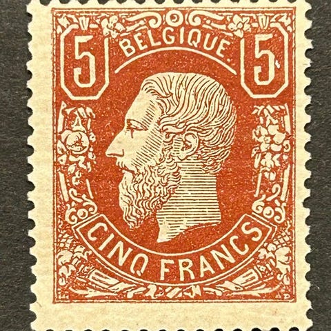 Belgien, 1918, postfrisk frimærke med titlen Uitgifte "Albert I opdruk Rode Kruis" - 20c+20c Lilla-brun med mørk aftryk, katalog OBP/COB 155-Cu, Tema: Kongelighed. Klik på den blå "gå til varen" knap, for at købe eller byde på denne vare. Den samlede pris vil blive vist inden du afgiver dit bud.
