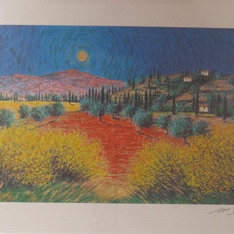 Realiseret med akrylmaling af høj kvalitet blev værket yderligere fremhævet af et lag gennemsigtig harpiks, som ikke blot bevarer maleriet, men også fremhæver farvedybden og overfladens glans.