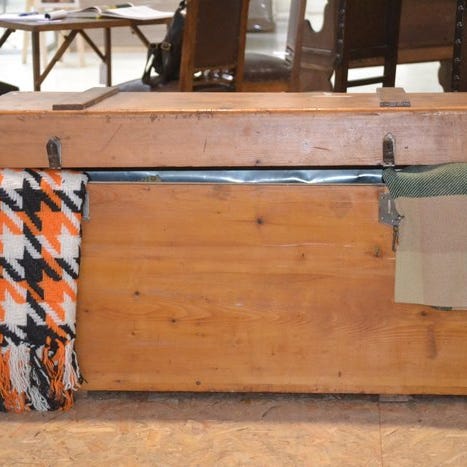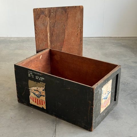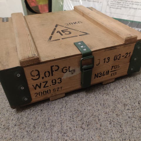Vi tilbyder dig en militær trækasse. Den blev fremstillet i 1950'erne. Den blev brugt til opbevaring af medicinsk udstyr af polske tropper. Denne kasse kan bruges som en skammel eller som basis for et bord.