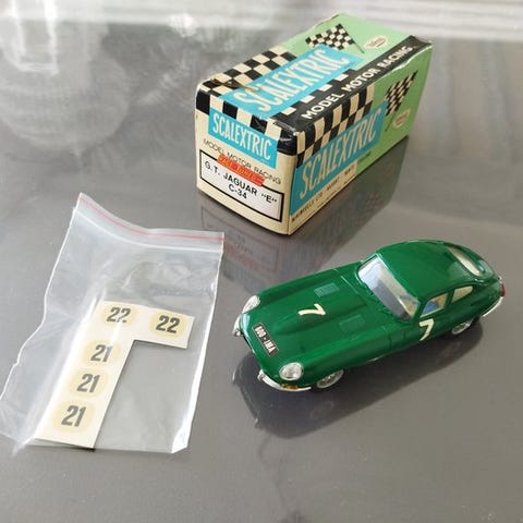 Scalextric C-34 Jaguar E-Type #11, hvid plastmodel, i meget god stand, med originalkasse. Klik på den blå "gå til varen" knap, for at købe eller byde på denne vare. Den samlede pris vil blive vist inden du afgiver dit bud.