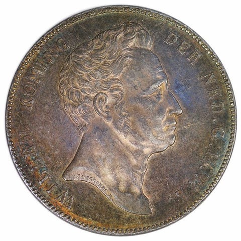 Nederlagetene Willem I 3 gyldne sølvmønt, overslag 1832 over 1824, forside med Willem Konge af Nederlandene, bagside med det korrekte nederlandske våbenskjold. Klik på den blå "gå til varen" knap, for at købe eller byde på denne vare. Den samlede pris vil blive vist inden du afgiver dit bud.