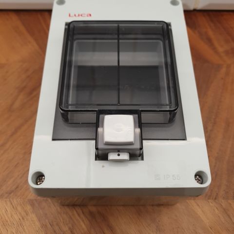 2 stk. helt nye udendørs vandtæt gruppetavle bokse med gennemsigtige klaplåge foran.