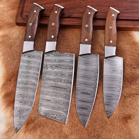 For at beskytte dine Damascus-knive mod rust, sørg for at rengøre dem med en klud og påføre vegetabilsk olie efter hver brug. Lad dem ikke være våde i længere tid. Opbevar dem hele tiden olierede. Disse knive er lavet af lav- og høj-karbon Damascus-stål, ikke rustfrit. Du kan ikke vaske dem i vand og sætte dem tilbage i etuiet. Du skal vaske dem med vand, tørre dem, SÅ påføre vegetabilsk olie, før de lægges tilbage i etuiet.