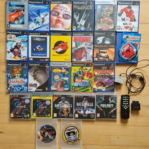 • 2 originale DualShock-controllere i gråt Sony (med analoge sticks og vibration, der fungerer perfekt)