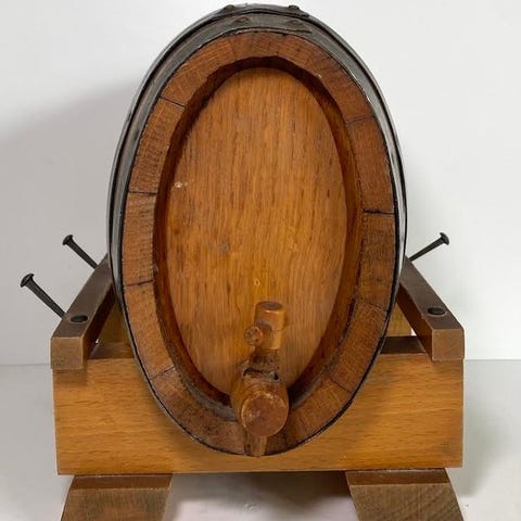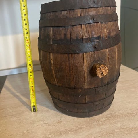 Jeg sælger en flot egetræstønde egnet til opbevaring af alkohol med en kapacitet på 3 l