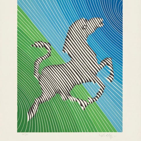 Flot, udtryksfuldt kunsttryk af Franz Marc i formatet 30 x 24 cm med titlen Blaues Pferd I. Verket er et høj-kvalitets tryk på fast papir og i meget god stand.