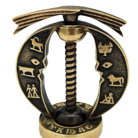 Træd tilbage i tiden med denne udsøgte solide messing-Proptrækker (korketrækker) med et smukt detaljeret engle-/cherub-design, fremstillet omkring begyndelsen af 1900-tallet. Både funktionel og dekorativ, dette sjældne stykke udstråler gammel verdens elegance og håndværket i traditionel vin-kultur.