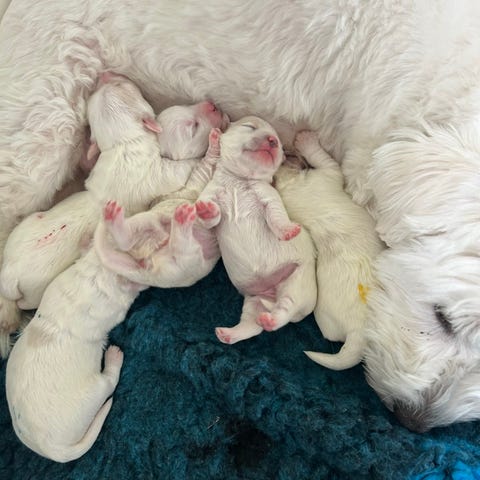 Hvalpene bliver tjekket for orm, får 1. vaccine, bliver chippet samt får DKK stambog.