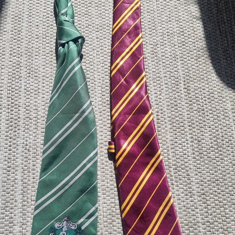 Harry Potter Slytherin kappe med halstørklæde og hue. Sættet består af en sort kappe med grøn foring og Slytherin-emblem på brystet, et strikket grønt halstørklæde med grå striber og Slytherin-logo samt en matchende grøn strikhue med grå striber og Slytherin-mærke. Velegnet som udklædning eller temabeklædning for fans af Harry Potter-universet.
