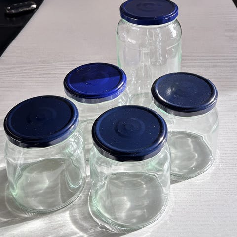 10 stk. rigtig pæne hvide flasker/opbevaringsglas med patentlukning. H 13,5 cm Ø 6 cm i bund.