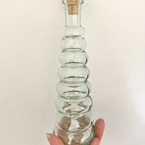 Den smukkeste glasflaske med præget motiv af druer / vindrue motiv / olieflaske / olie flaske / vinflaske / vin flaske / olie karaffel / vindrue glas karaffel med korkprop / flaske med præget frugt mønster