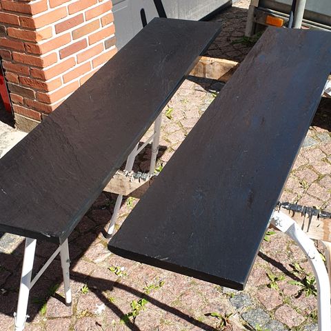 31 stk tag-/facade plader i sort farve med rektangulær form. Overfladen har en let struktureret, skiferlignende finish.