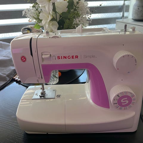 Singer 3223 symaskine i hvid og lyserød. Modellen drives med 230V, 50Hz og har en effekt på 70W. Maskinen har bærehåndtag og mekanisk betjening via drejeknapper på fronten. Egnet til almindelige syopgaver i hjemmet som reparation, oplægning og simple syprojekter. Leveres med stofbetræk til opbevaring efter brug.