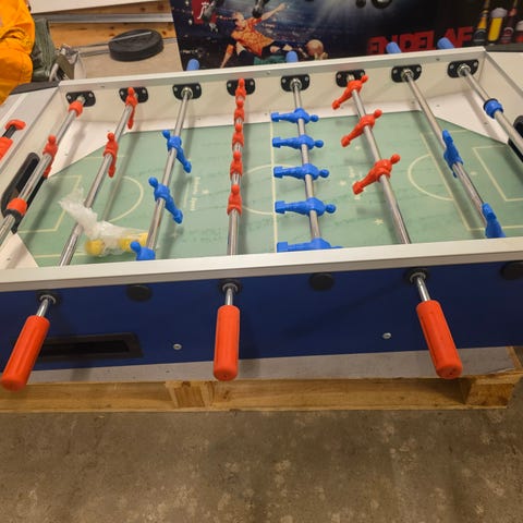 Garlando Pro Champion bordfodboldbord i sort med grøn spilleplade kr. 6-9000,- som nyt. Bordet har metalstænger med røde og blå spillere og sorte gummistoppere. Egnet til indendørs brug i fx spilrum, kontor eller fællesrum. Stabil konstruktion med firkantede ben og klassisk turneringsopstilling på banen.