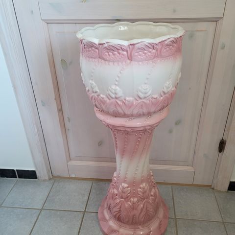 Antik majolika jardiniere på stander, en dekorativ urtepotteskjuler der var populær i det 19. århundrede til hjem og vinterhaver.