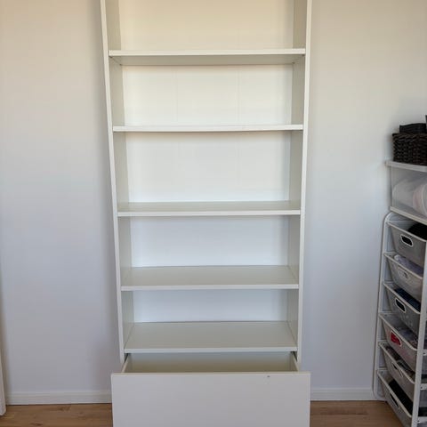 Reolen er i pæn stand med almindelige brugsspor, men ingen skader. Har stået i et røgfrit hjem.