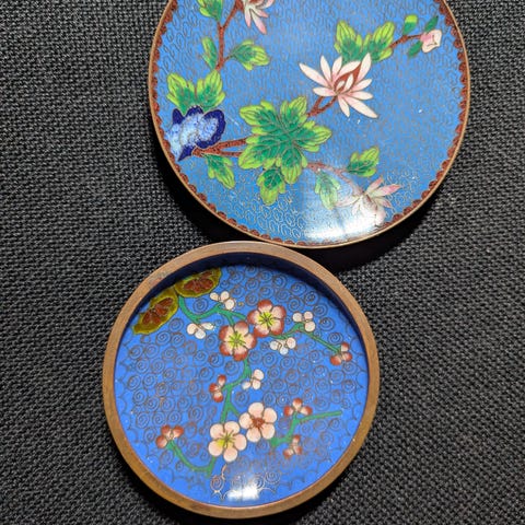 Meget fint gammelt cloisonné salt og febersæt som min far har hjembragt fra østen i 1950'erne.
