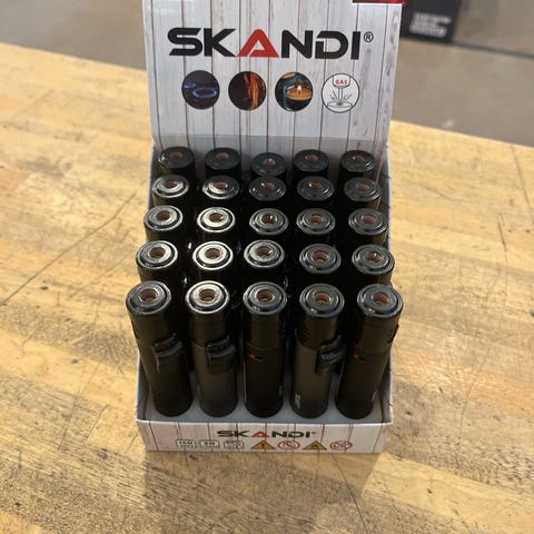 Skandi elektronlighter 5-pak. Kasser med 25 stk x5 lighter i Pakken indeholder 5 elektroniske lightere i assorterede farver. Velegnet til daglig brug, f.eks. til stearinlys, grill eller andre formål hvor en lighter er nødvendig.