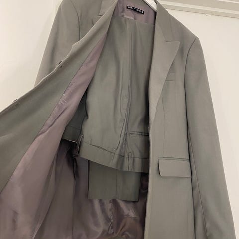 Selected jakkesæt til herre i størrelse 46. Sættet er gråt og fremstillet i bomuld. Består af jakke med to knapper foran, brystlomme og forlommer med klap samt matchende bukser med lommer og bæltestropper. Velegnet som klassisk jakkesæt til hverdag eller formelle lejligheder. Aldrig brugt