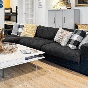 Lædersofa og lænestol med puf fra Campo