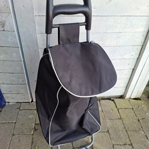 Praktisk indkøbsvogn med hjul, så du slipper for at bære tunge ting.