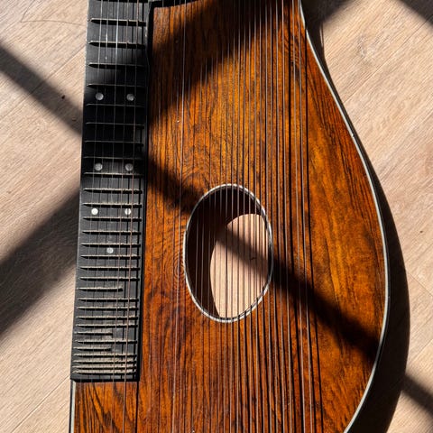 Smuk, antik-lignende afrikansk Sanza (også kendt som Mbira eller tommelfingerklaver). Dette er et unikt stykke folkekunst, der både fungerer som et fuldt funktionelt musikinstrument og et dekorativt samlerobjekt.