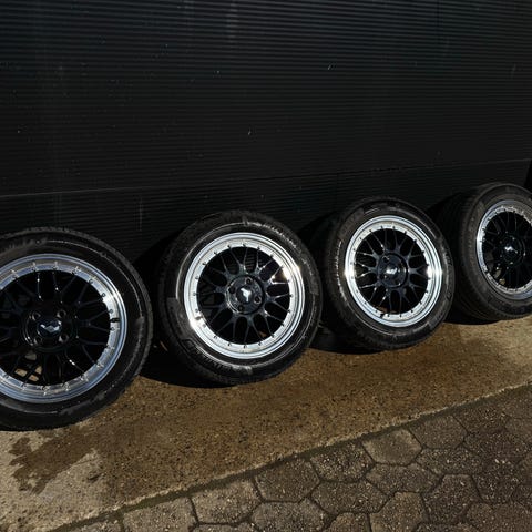 Nye dæk og fælge. Se beskrivelse af fælge på foto. ET 35. 2 stk. 215/45x16 og 2 stk. 225/45x16. Centerhul kan ændres med centrerings ring.