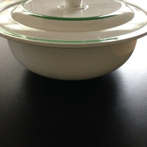 Ubrugt terrin til servering af f. eks. supper eller lignende. Helt hvid og derfor passer den til de fleste stel. Sælges for kr. 50,-