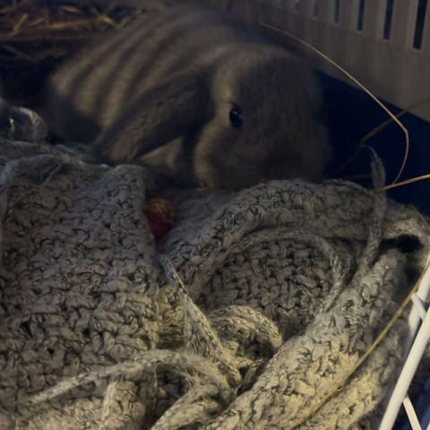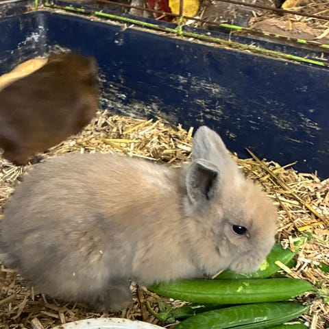 Da han var lille, var han en rigtig puttekanin, som ofte sov i sengen og opholdt sig på værelset. Nu bor han udenfor i bur, efter vejret er blevet varmere, og han elsker at være ude og løbe frit rundt.