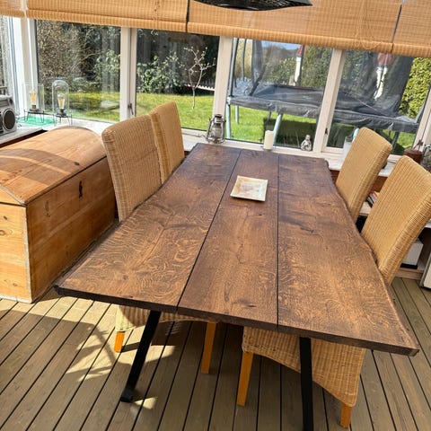 Træ som er olieret sort - trænger til en ny behandling, med mindre man foretrækker det rustikt.