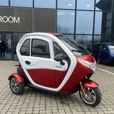 Brugt kabinescooter, som måske ikke vinder på det kosmetiske, men som stadig kan være en rigtig fin og praktisk løsning til dig, der ønsker tryg og komfortabel transport i hverdagen. En oplagt mulighed for at komme godt kørende til en skarp pris.