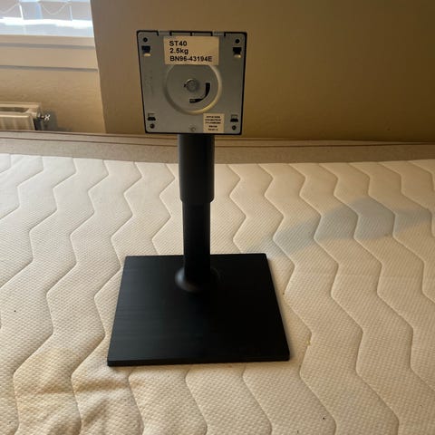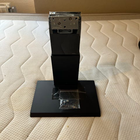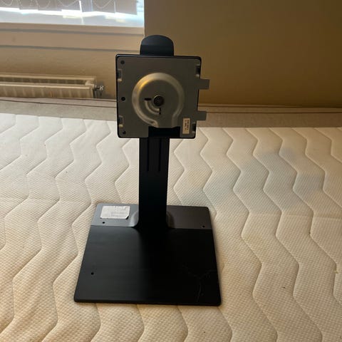 Dell skærmstand til montering af Dell-skærm med hurtigkoblingsbeslag. Standeren har rektangulær fod og justerbar højde. Egnet som erstatningsfod til kompatible Dell-skærme, hvor skærmen klikkes på beslaget på standerens top.