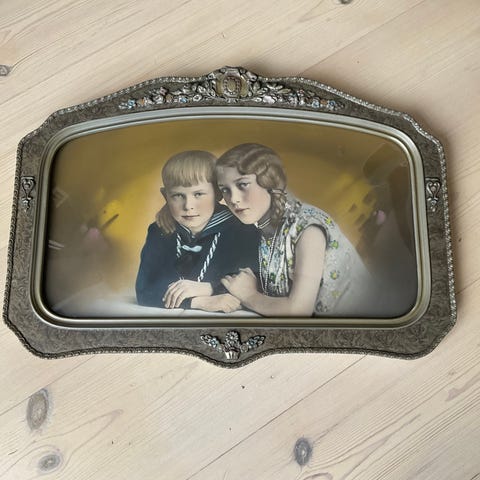 Brasiliansk Art Deco bakke med sommerfuglevinger i træramme