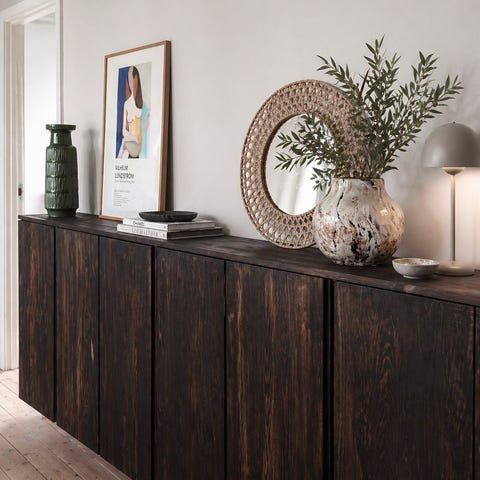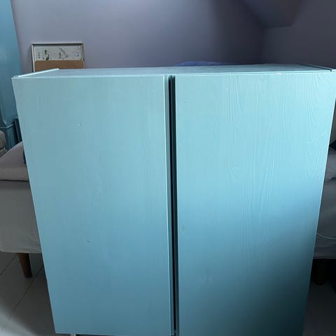 4 Ivar skabe (smal dybde 30 cm), som er behandlet med indfarvet linolie i en flot grøn farve (avocado agtig 🥑)