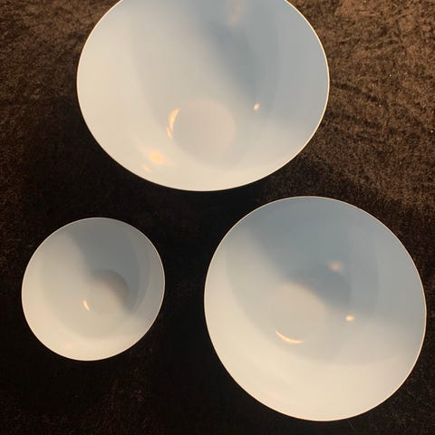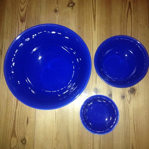 de blå og gule er som nye og der 6 stk af hver og samlet pris for de blå og gule tallerkener er 735 kr
