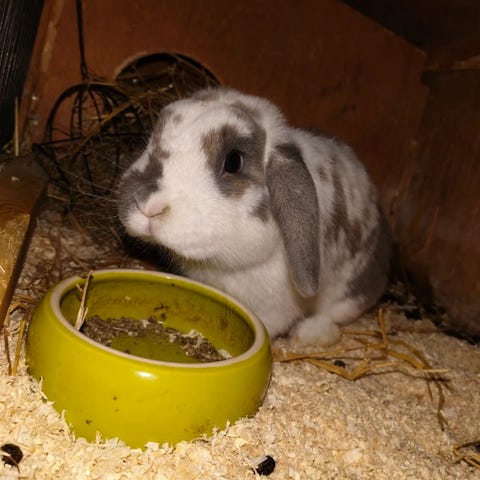 Bur, hule, toiletbakke, stor løbegård, 10 kilo halm, lidt foder, legetøj osv. medfølger
