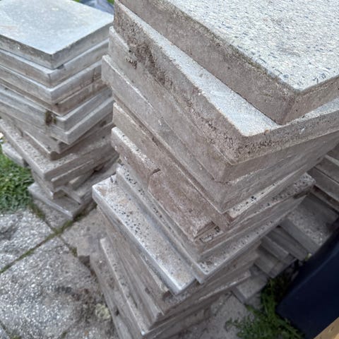 har 50 stk 30x30x3 og 7 stk 15x30x3 cm.