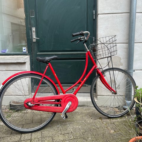 Helt køreklar cykel alt fungerer godt. Den har 3 gear og en for håndbremse.