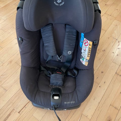Modellen monteres med bilens sikkerhedssele og har støtteben samt justerbare seler.
