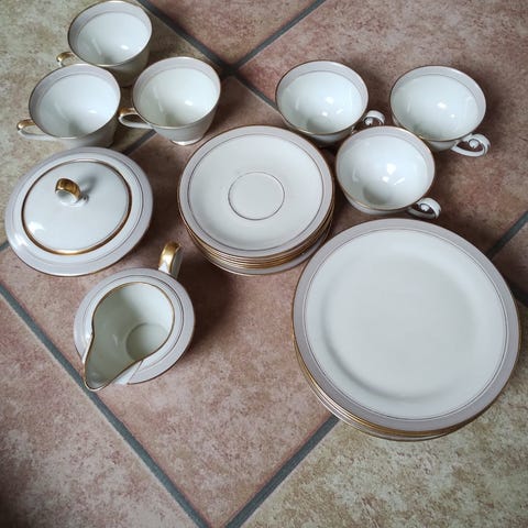KPM Rubens stel hvidt porcelæn med guldkant