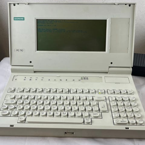 Siemens SIMATIC S5 PG631 programmeringsenhed til S5‑seriens PLC’er, sælges brugt og ikke testet – kun som reservedele, reparationsemne eller samlerobjekt. Enheden har klassisk industri‑CRT-skærm, integreret tastatur og tilslutninger på bagsiden til direkte programmering og service af SIMATIC S5‑anlæg. Der medfølger ingen kabler eller ekstra tilbehør; kun selve PG631 som vist på billederne.
