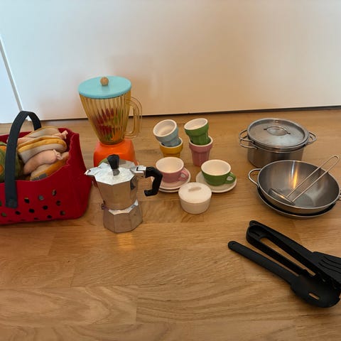 Her er alt hvad den lille kok skal bruge i et køkken. Der er til mange timers god leg.