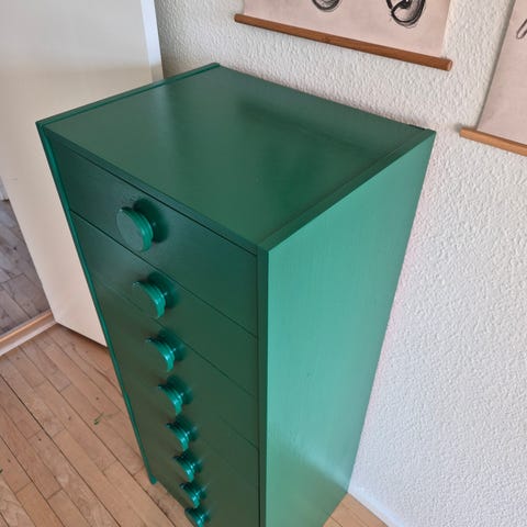 2 stk grønne ældre natbord / sidebord / kommode med skuffer der køre som de skal . Mål H 63,5cm.. D 31cm.. B 45cm.. mulighed for levering