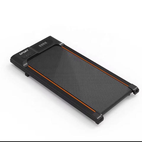 Løbebånd i sort farve. Modellen har et lige løbefelt og et simpelt kontrolpanel med start/stop, hastighedsregulering samt sikkerhedsnøgle. Egnet til indendørs brug til gang eller løb i hjemmet. Løbebåndet har en kompakt udformning, som gør det velegnet til placering i stue eller træningsrum.