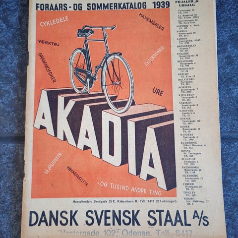 Gammelt og sjældent katalog med bl.a. cykler og cykeldele.