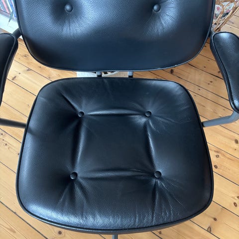 Ikea Alefjäll i sort læder. Design Francis Cayoutte. Nypris 1.900 kr. Stolen er købt i september 2025.